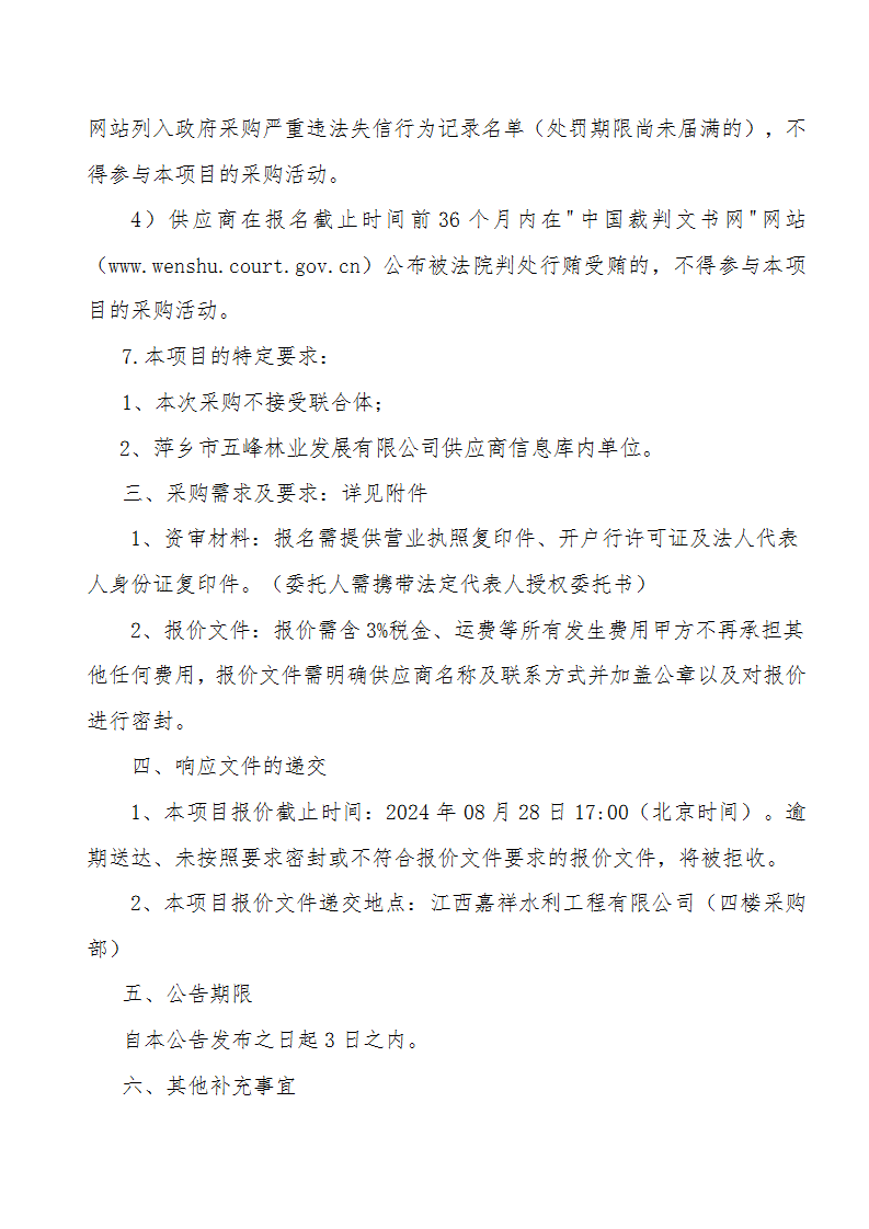 萍鄉(xiāng)市五峰林業(yè)發(fā)展有限公司2025年度供應(yīng)商招募啟事