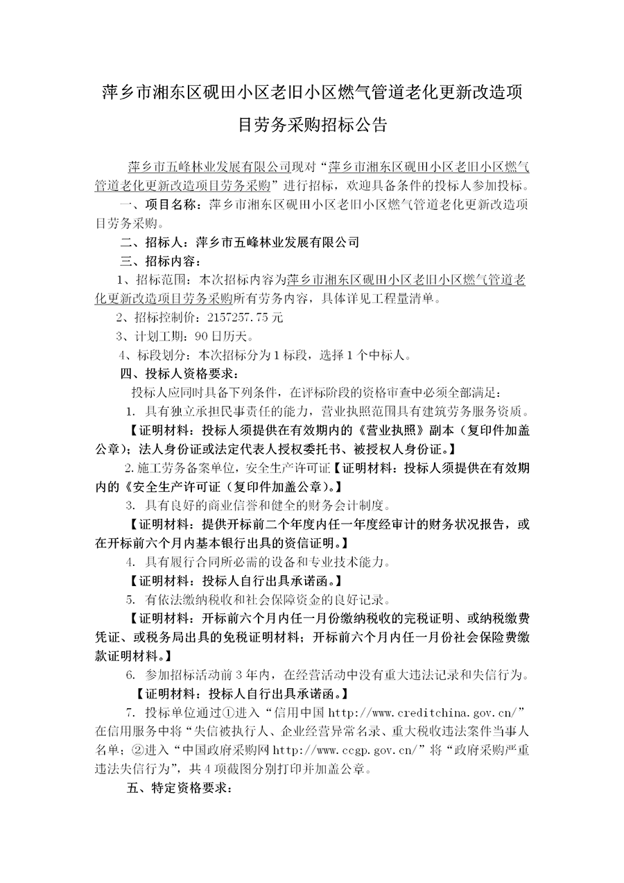 萍鄉(xiāng)市五峰林業(yè)發(fā)展有限公司2025年度工程專業(yè)承包供應(yīng)商、施工勞務(wù)供應(yīng)商、工程服務(wù)供應(yīng)商預(yù)選庫(kù)建立項(xiàng)目招標(biāo)公告
