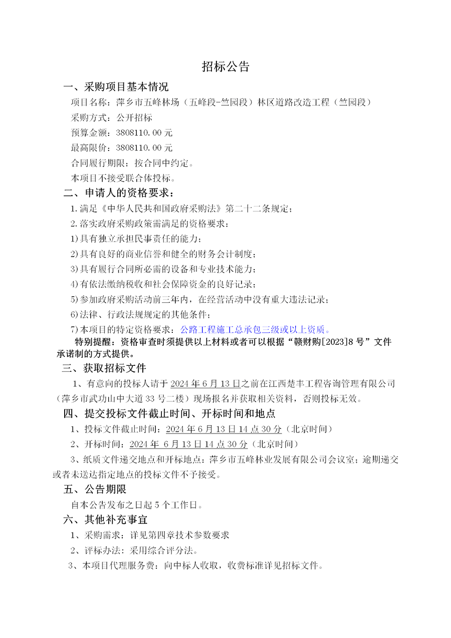 萍鄉(xiāng)市五峰林業(yè)發(fā)展有限公司2025年度工程專業(yè)承包供應商、施工勞務供應商、工程服務供應商預選庫建立項目招標公告